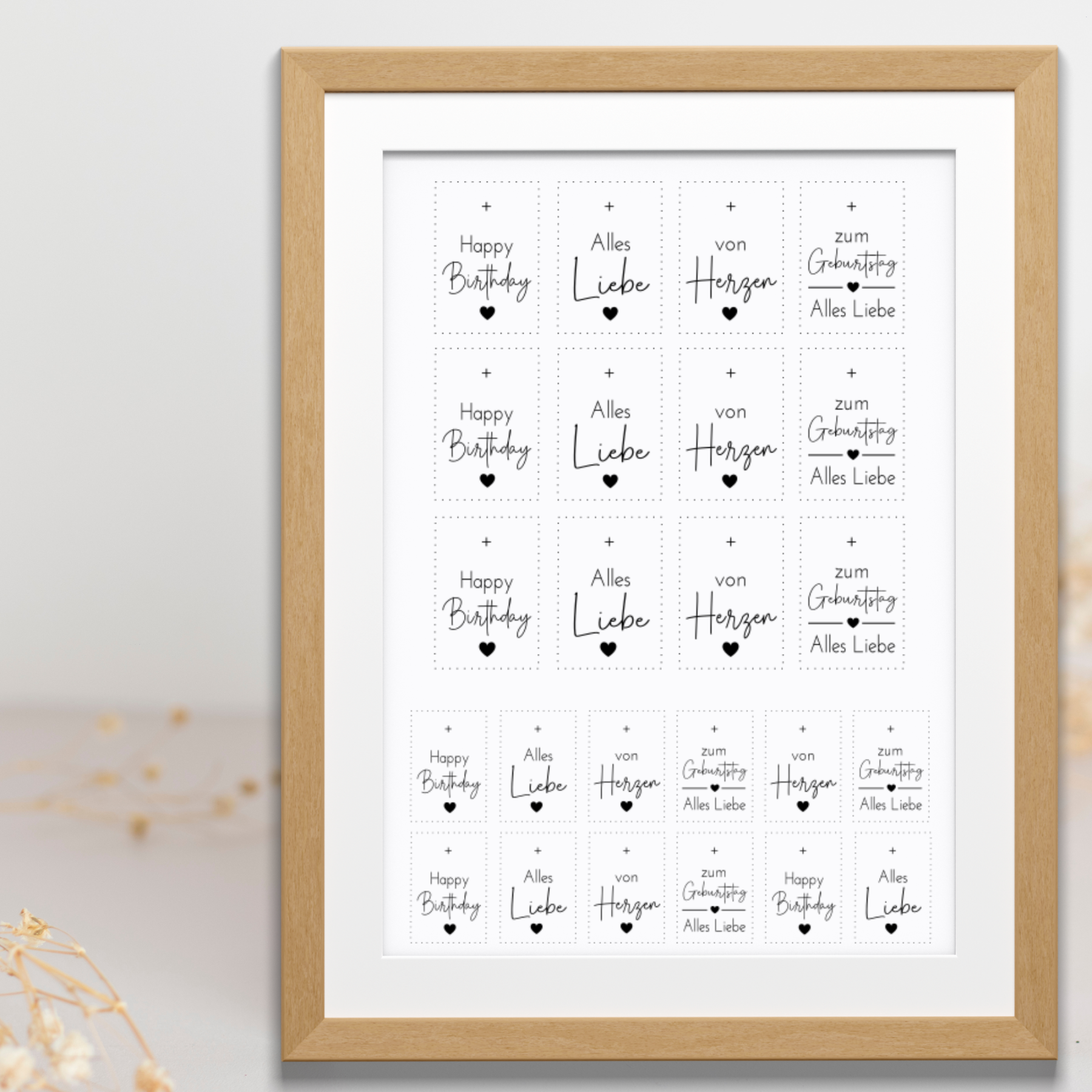 "Zur Geburtstag, Alles Liebe" 3x groß, 3x klein
