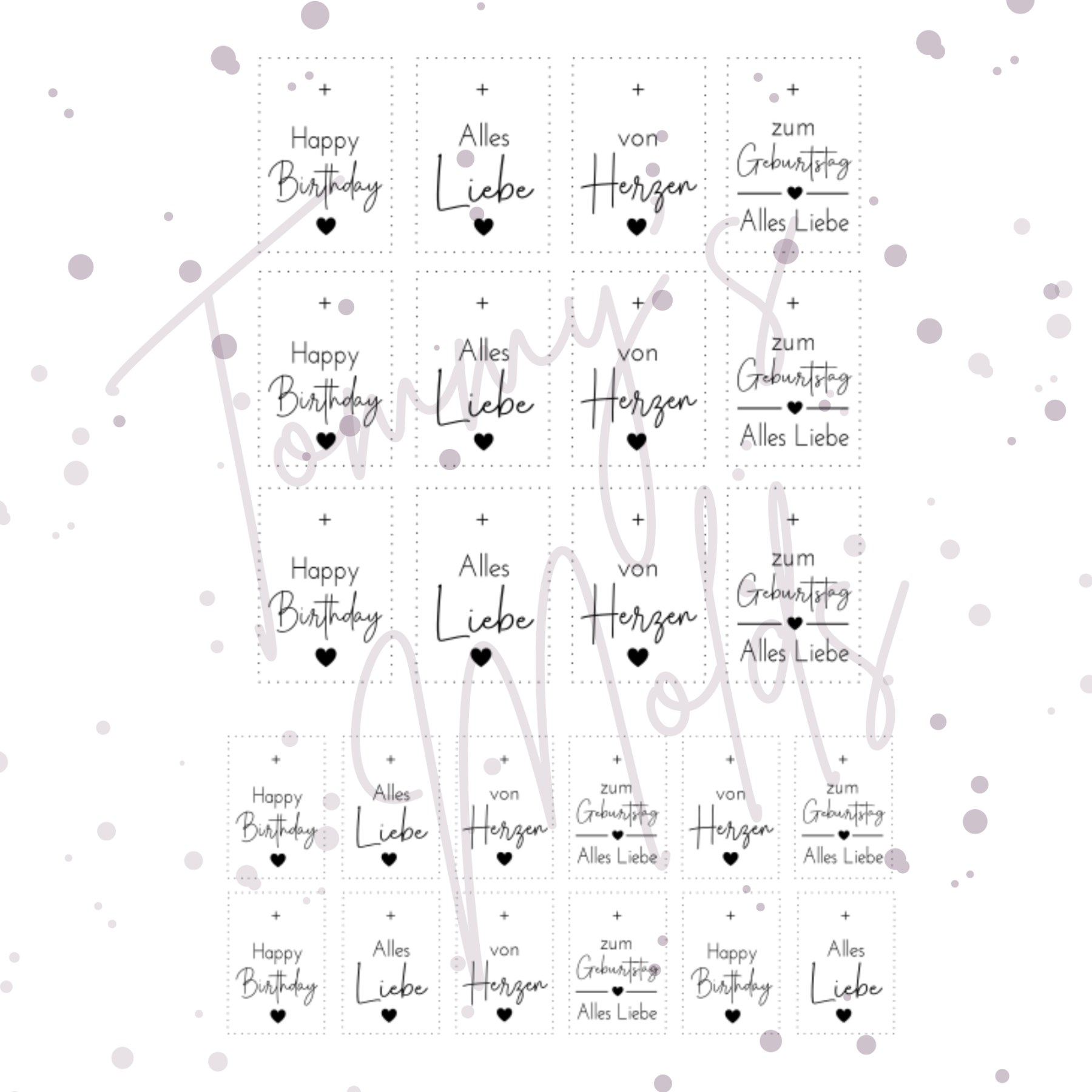 "Alles Liebe" 3x groß, 3x klein