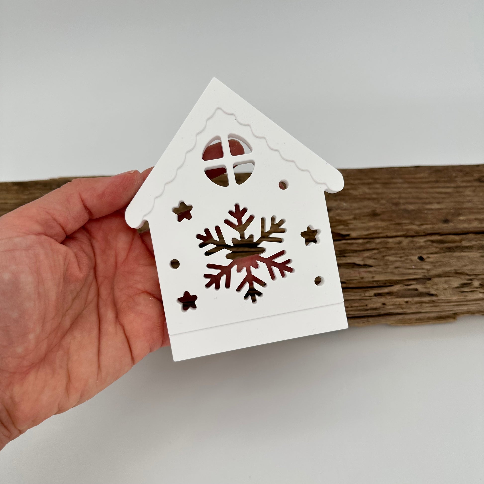 Haus mit Schneeflocke Einschieber kurz
